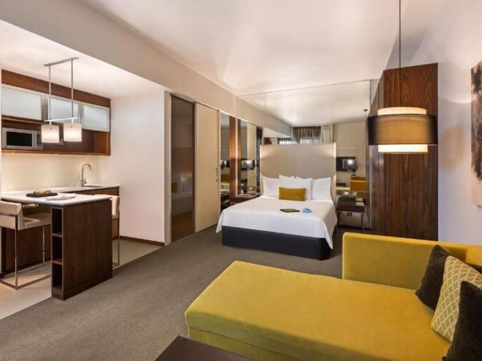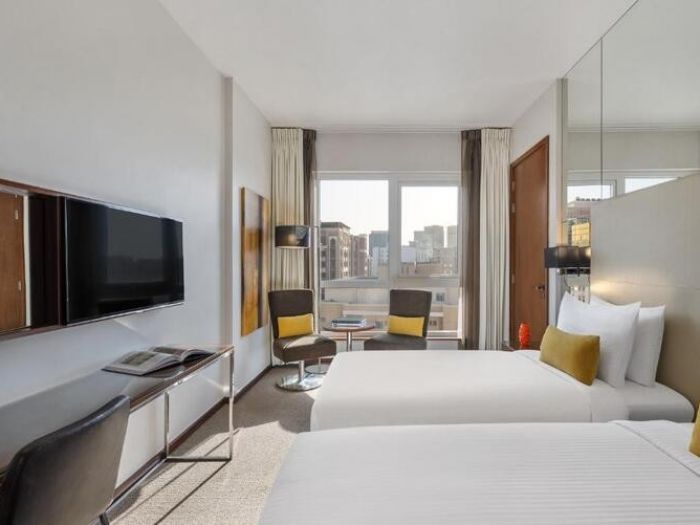 Насладете се на допълнително пространство и комфорт в тази модерна стая с двойно легло, кухненски бокс, кът за сядане и работно бюро, плюс интелигентни технологии в стаята, за да осигурите лесна, свързана и безстресова връзка.