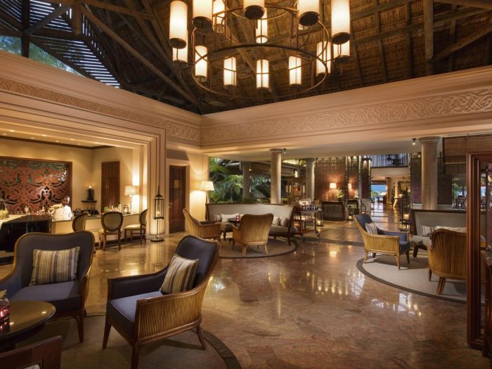 3 алакарт ресторанта - основен ресторант L’Archipel, рибен ресторант Le Barachois, азиатски ресторант, 3 бара - The Laguna Bar, The Lotus Lounge Bar, Barachois – floating bar, винарна с 25,000 бутилки вино (най-голямата на Мавриций), СПА център със сауна, парна баня, студен и топъл басейн, магазини, 24-часова рецепция, библиотека. Безплатни услуги: фитнес, тенис, колелета под наем. Платени услуги: масажи и процедури в СПА центъра, химическо чистене и пране, фризьор, уроци по тенис и йога, личен фитнес треньор, оборудване за тенис. За децата: детски клуб, детски басейн, детска площадка. Плаж: собствен, с фин бял пясък.