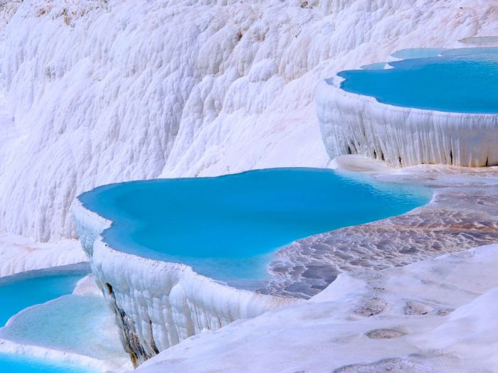 Посетете магическата и зрелищна природна местност, уникална в целия свят. Варовиковите отлагания от горещите минерални извори са облекли скалистите тераси в ослепителна белота. Оттам идва и името на Памуккале - "замък от памук". Разходете се из улиците на древния град Хиераполис и се върнете назад във времето, докато разглеждате храма на Аполон и Плутониум, портата на Домициан и главната улица. Не пропускайте да видите и античния театър, както и басейна на Клеопатра.