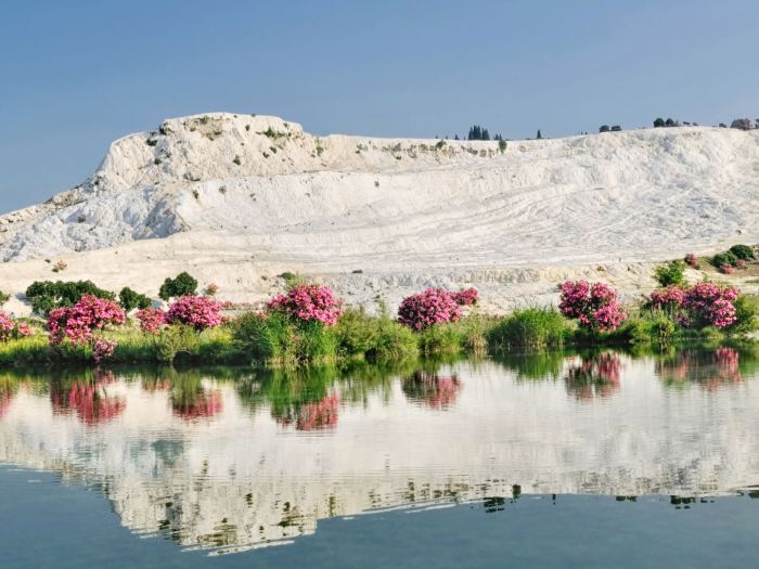 Посетете магическата и зрелищна природна местност, уникална в целия свят. Варовиковите отлагания от горещите минерални извори са облекли скалистите тераси в ослепителна белота. Оттам идва и името на Памуккале - "замък от памук". Разходете се из улиците на древния град Хиераполис и се върнете назад във времето, докато разглеждате храма на Аполон и Плутониум, портата на Домициан и главната улица. Не пропускайте да видите и античния театър, както и басейна на Клеопатра.