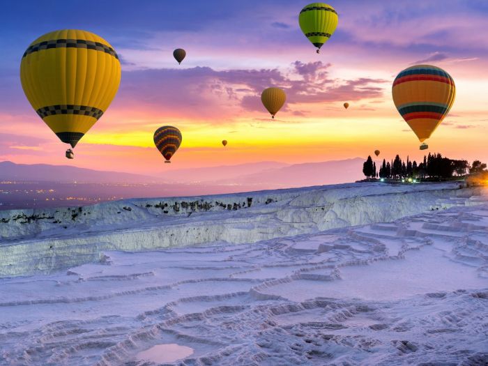 Полет с балон с горещ въздух над снежно белите варовикови травертини на Памуккале, долината Меандър и известните останки на древния град Хиераполис. Ще се насладите на спиращите дъха панорамни гледки от над 1000 метра височина, ще дегустирате шампанско и ще получите сертификат за участие в полета.