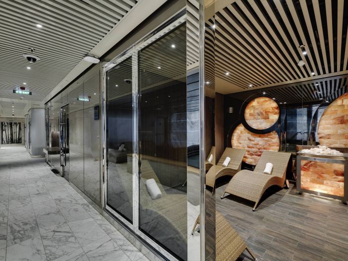 Тук ще намерите СПА център с козметичен салон с процедури и масажи, фризьор, маникюр, бръснар, солариум, термална зона с финландска баня, солна стая, парна баня.
