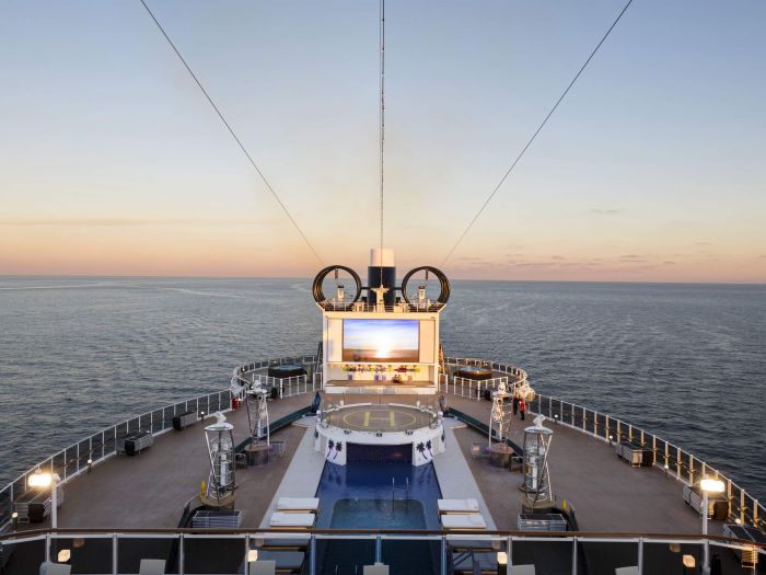 Корабът разполага с 4 басейна и обширни плажни зони с шезлонги около тях. Има и закрит басейн и 13 джакузита.
