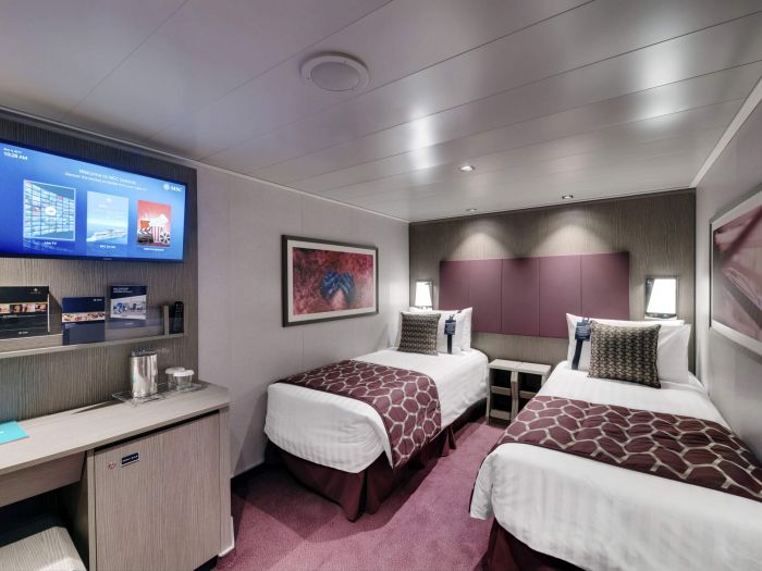 Гостите могат да избират между 2066 каюти от различни категории, създадени да отговарят на всички нужди по време на плаването: вътрешни каюти, каюти с прозорци и балкони, стаи за инвалиди, апартаменти с тераси и джакузи.