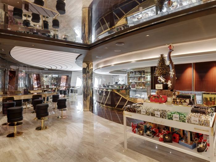 Корабът разполага с голяма търговска зона с магазини и бутици за бижута, аксесоари, парфюми, козметика, цигари, напитки, облекла и чанти.