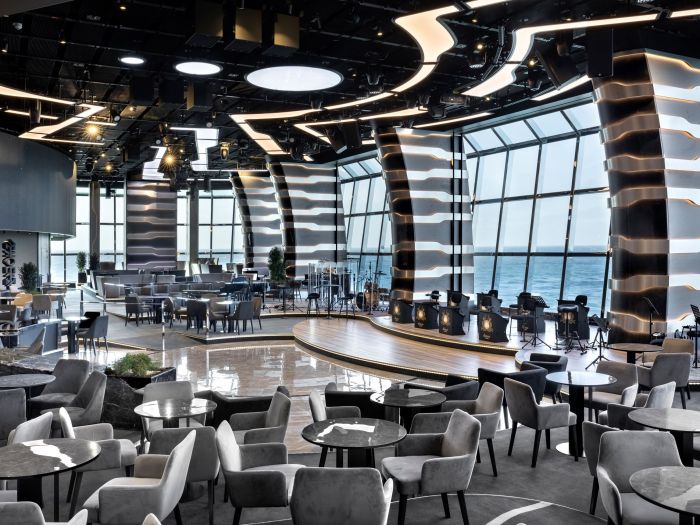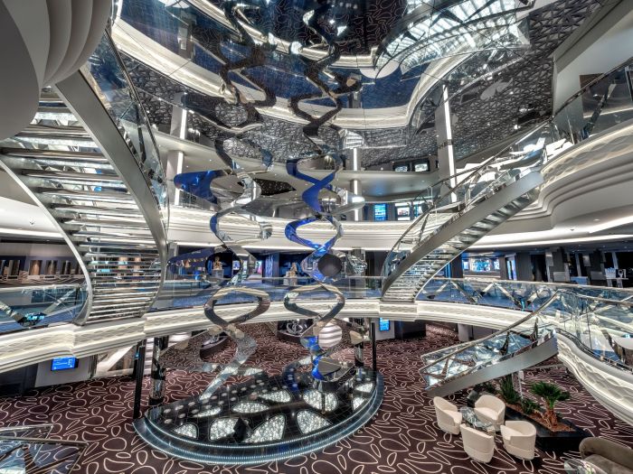 Класическата вече за корабите от флотилията вътрешна променада с LED таван, обградена от ресторанти и магазини, отново се превръща в център на социалния живот на борда, както и в сцена на различни партита и събития.