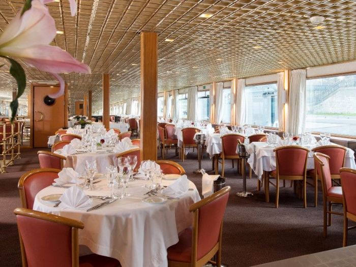 Ресторантът е разположен на горна палуба. Класическият интериор е допълнен с големи френски прозорци, които осигуряват както много светлина, така и невероятна гледка.
