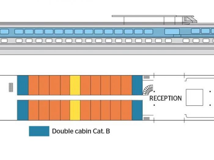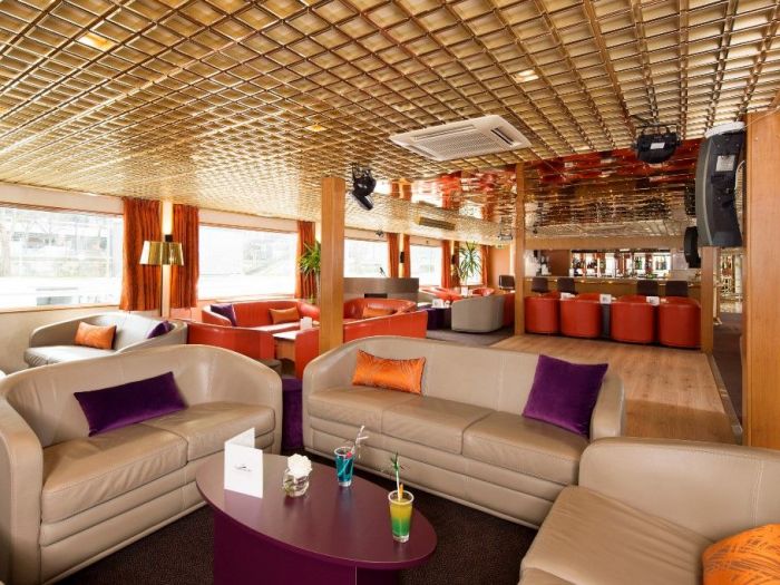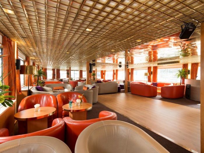Рецепцията и бара също се намират на горната палуба.