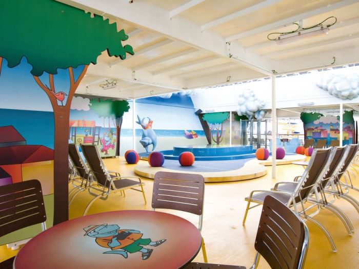Корабът има обособена зона за деца и тийнейджери с анимация и зона с видео игри.