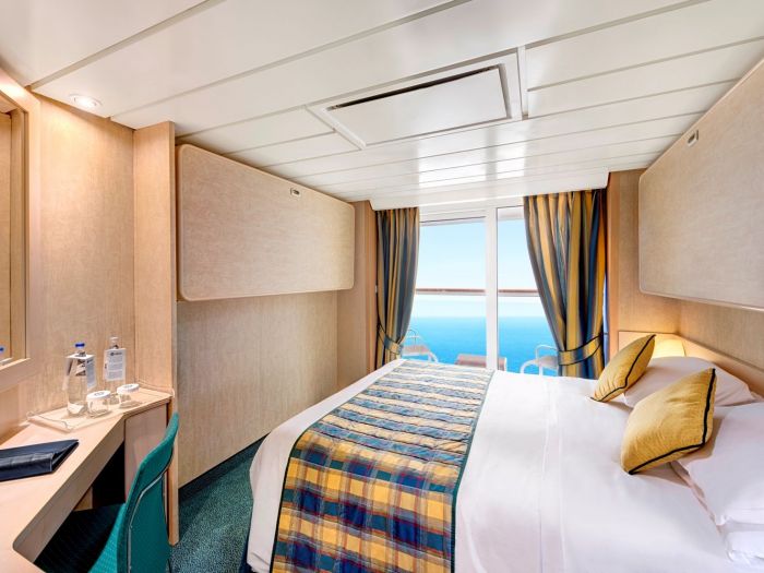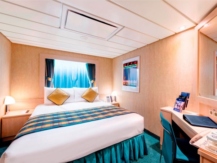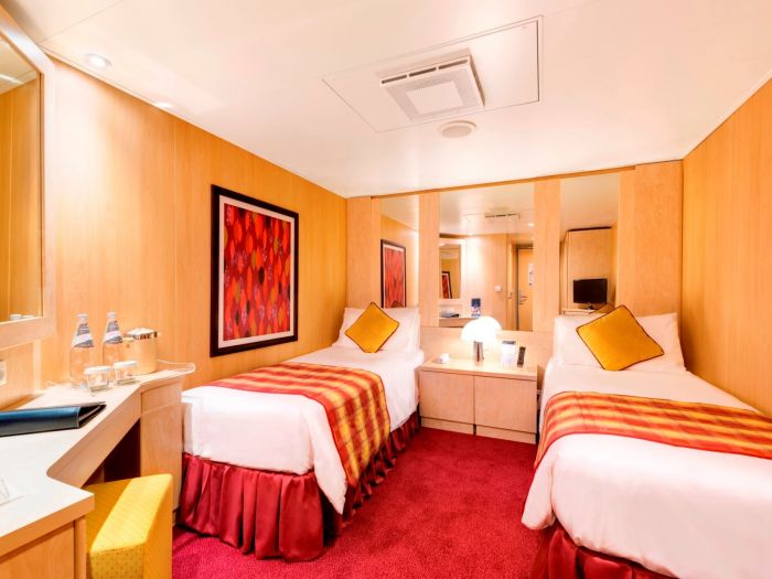 Суити, каюти с балкон, каюти с прозорец /не се отваря/, вътрешни каюти, каюти за инвалиди. Всички със сателитна ТВ, телефон, сейф, сешоар, климатик, минибар, интернет и рум сървиз срещу заплащане. Повечето разполагат с диван, който се превръща в трето легло или 2 легла една над друго за настаняване на 2 деца.