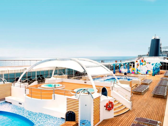 - Използване на съоръженията на кораба като плувен басейн, шезлонги, фитнес, нощен клуб, кърпи за плаж;