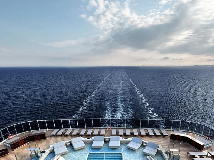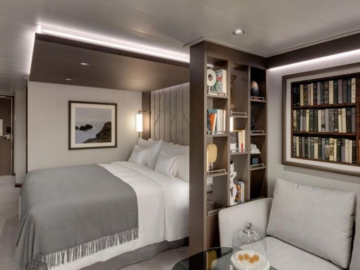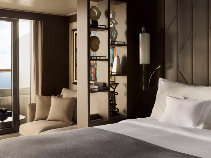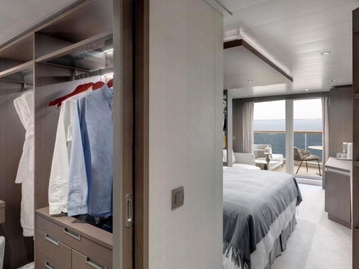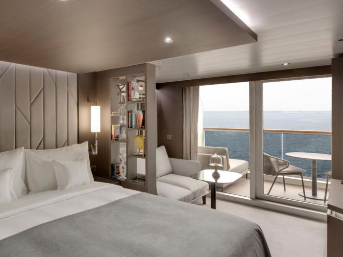 - Характеристики на апартаментите: Всички апартаменти са с изглед море/океан. Обща площ на апартамента: 35 кв.м Апартамент: 28 кв.м Тераса: 7 кв.м Максимален капацитет: 2 възрастни и 1 дете до 18г Големи прозорци от пода до тавана с изглед към морето Дневна зона с маса за кафе и хранене Бутилка Veuve Clicquot Yellow Label за добре дошли в апартамента Мини-бар, допълващ се според предпочитанията на гостите Машина за еспресо, чайник и кана за чай с безплатна селекция от кафе и чай Безплатна персонална бутилка вода за многократно пълнене за всеки гост Чифт бинокъл за ползване от гостите по време на пътуването им Възможност за включване на повечето таблети и лаптопи Просторна тераса с кът за хранене към океана Удобно легло за почивка на терасата Голямо легло - размер: 180 x 200 см. Някои апартаменти са с две единични легла - размер: 2 x 90 x 200 см Пухени завивки и възглавници Фино спално бельо от Frette Богат избор на възглавници Просторен гардероб Просторна баня с душ кабина и подово отопление Плюшени халати от Frette Тоалетни принадлежности и принадлежности за баня Dyson Supersonic TM сешоар и осветено огледало за грим/бръснене Описание на кораба: Дължина: 248 м Тонаж: 63 900 GT Три открити басейна и един закрит басейн с подвижен стъклен покрив Над 700 кв. м уелнес съоръжения на закрито и на открито Над 270 кв. м фитнес съоръжения с най-новото оборудване Казино, художествена галерия и бутик