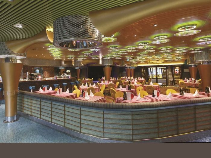 На борда има 8 места за хранене и 11 бара. Между тях основен ресторант, пицария, бюфет ресторант на самообслужване, джелатерия Амарило с италиански занаятчийски сладолед, винотека, немска бирария, ресторант Тепаняки с японска кухня.