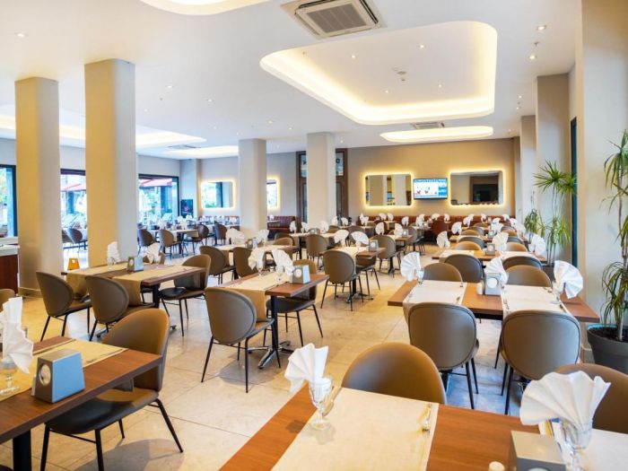 Основен ресторант, бар, открит басейн, турска баня, паркинг.