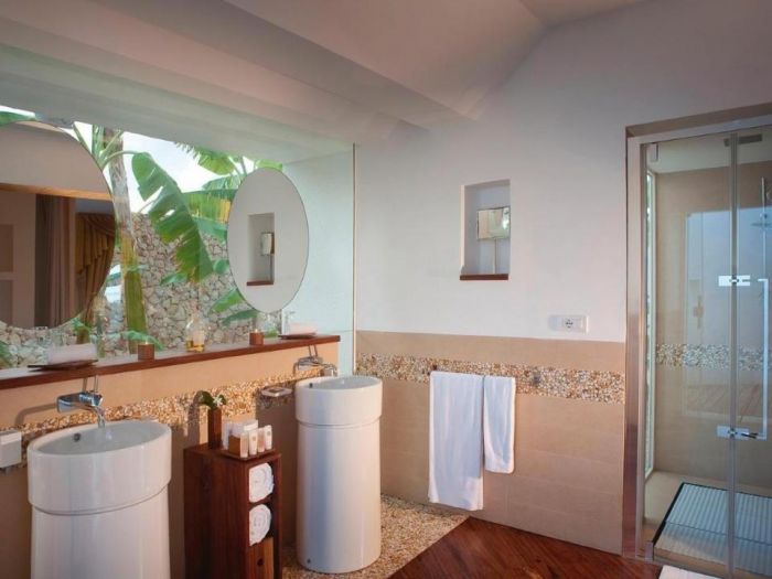 Стаите са просторни и във всяка една от тях гостите ще намерят климатик, сателитна телевизия, минибар и балкон или тераса, както и много други удобства. Освен това хотелът разполага с вили с частни басейни за тези, които искат престой в пълен лукс.