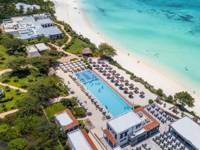 RIU Palace Zanzibar 5*е разположен на северозападното крайбрежие на Занзибар, на красивия плаж с бял пясък Нунгви. Град Стоун Таун е на 55 км от хотела. Хотелът Riu Palace Zanzibar се намира на красив плаж с бял пясък с кристални води и предлага на своите гости почивка на база ол инклузив с качеството на веригата RIU Hotels & Resorts В Riu Palace Zanzibar. На разположение на гостите са три басейна, СПА център, ресторанти и барове. За доброто насроение се грижи екип от аниматори, а вечер има музика на живо.Общите части и стаите разполагат с безплатен Wi-Fi.
