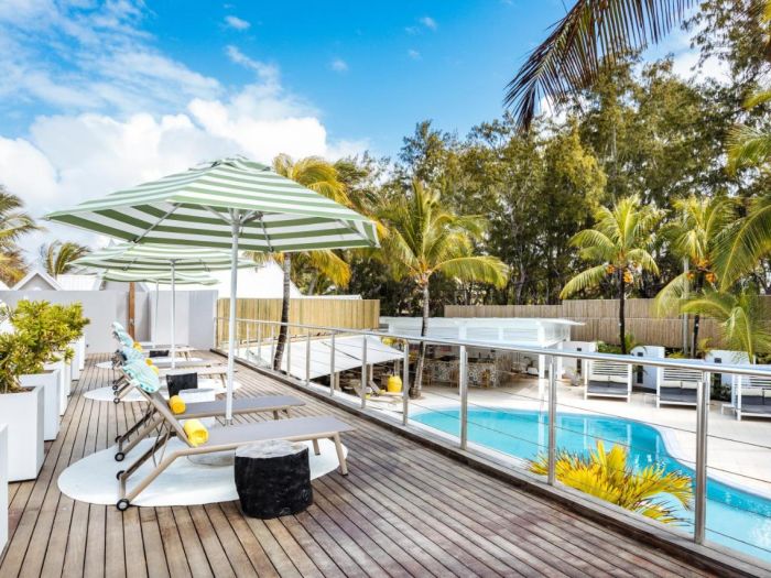 Tropical Attitude е хотел само за възрастни, разположен до плажа сред градина с кокосови дървета. Предлага безплатни екскурзии с лодка до остров Île aux Cerfs, декор в традиционен стил, открит басейн и безплатни водни спортове. Повечето от просторните стаи имат мебелирана тераса и изглед към Индийския океан, а някои са с гледка към тропическата градина. Всяка от климатизираните стаи включва декор основно в бял цвят, сателитна телевизия, минибар и самостоятелна баня. Гостите могат да си поръчат местни и интернационални ястия в ресторант Borlamer и напитки в бар Sea U Bar, които се сервират и на терасата с гледка към океана. Безплатните дейности включват обиколка с лодка със стъклено дъно. Предоставят се велосипеди под наем, а на място има и съоръжения за волейбол, тенис на маса и настолни игри. В стаите за гости и в общите части е осигурен безплатен WiFi. Хотел Tropical Attitude е с изглед към рибарското селище Trou d’Eau Douce, на 2 км. Бел Мар е на 15 минути път с кола. Международното летище Mauritius е на около 45 минути с кола.