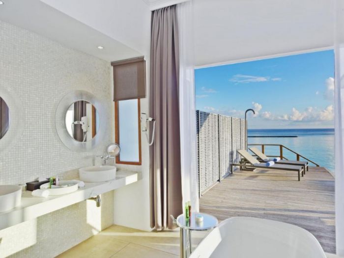 Разположени в средата на тюркоазената лагуна, Deluxe Water Villas разполагат с голямо легло, дневен диван, просторна баня с вана и широка тераса със стъпала директно към водата, както и богато зареден минибар с винена селекция от над 30 бутилки.
