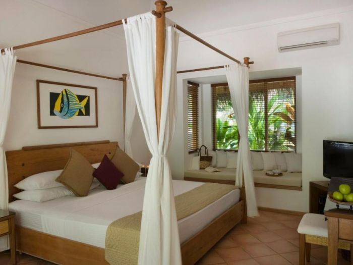 Beach Bungalow са дървени вили сред природни градини, създадени за романтични двойки, с king size легло, външна тераса с шезлонги за двама и открита баня с хидромасажна вана.