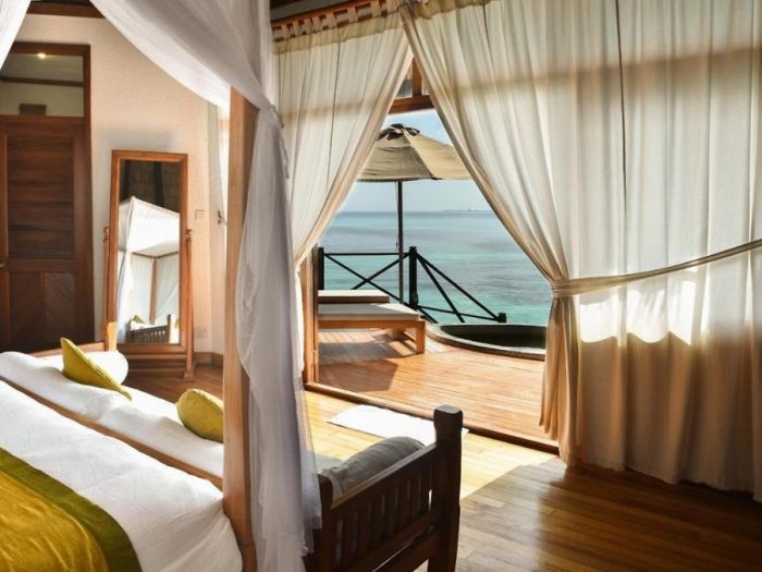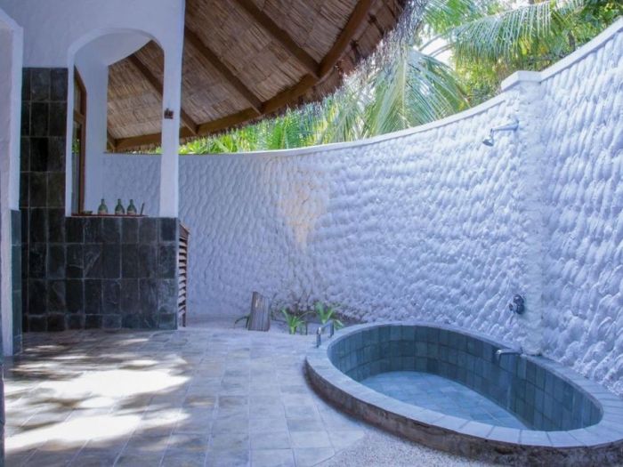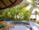 В стаите: Неговите 98 вили със сламени покриви, са изолирани и скрити от цветя, тропически папрати или палми. В хотелската стая ще намерите халат, чехли, аксесоари за баня, сешоар, централен климатик, телефон, минибар, удобства за приготвяне на чай и кафе, хладилник, ютия с дъска за гладене, две бутилки питейна вода на ден, безплатен Wi-Fi и сейф.