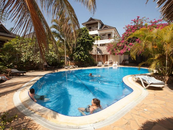 Langi Langi Beach Bungalows се намират на плажа Nungwe северно от Занзибар и предлагат открит басейн и ресторант. На плажа има възможности за гмуркане с шнорхел и акваланг. Помещенията за настаняване са оформени в суахили стил и разполагат с балкон или веранда и баня с душ. Леглата имат мрежа против комари. Ресторантът на хотела сервира местна и интернационална кухня. Има и бар. Летище Занзибар е 1 час път с кола от Langi Langi. Срещу допълнително заплащане се организира летищен трансфер.