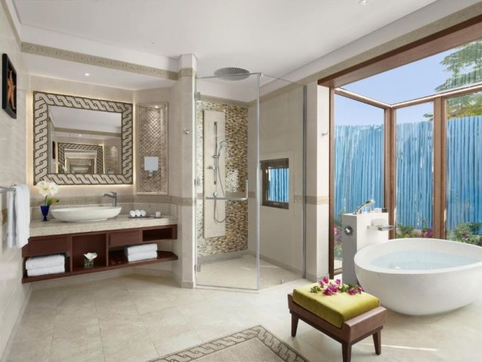 Вила с частен басейн – разположена в тих залив с гледка към Арабския залив, с просторна външна зона за игри. Плувайте в басейна, печете се на шезлонги и се освежете край водата. 100 м², максимум 4 възрастни, легло king size и две единични легла.