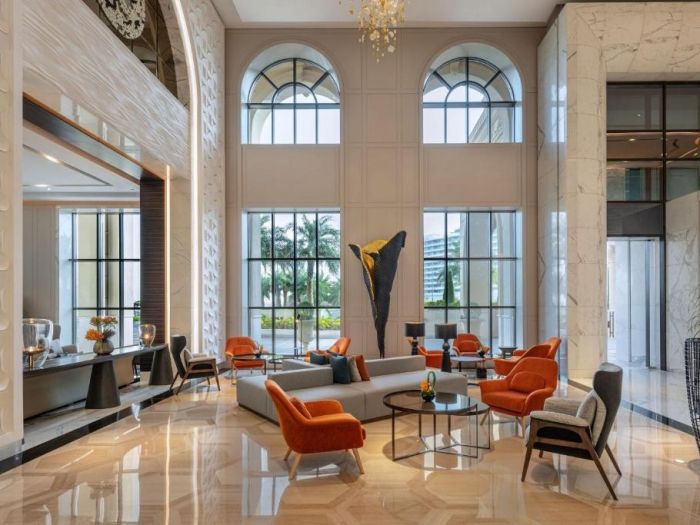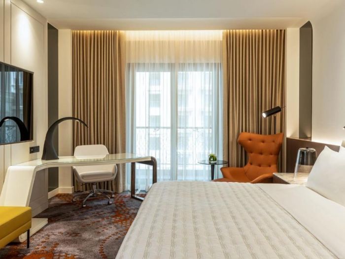 Le Royal Méridien Place Vendôme Lusail предлага 5-звездни помещения за настаняване с хидромасажна вана и тераса.