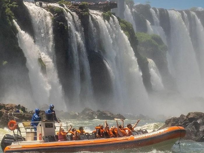 Тази невероятна обиколка е разделена на три етапа: джунгла, пътека и лодка. Приключението започва с 2 км. каране през джунглата на Национален парк Игуасу, където ще бъдем транспортирани от екологични превозни средства, задвижвани с електричество, които освен че са безшумни, гарантират панорамна гледка към безбройните видове растителност, които изграждат маршрута . Следва 600-метрова разходка през гората и беседа за местната фауна и флора. На този етап от обиколката контактът с природата е по-голям и имаме шанс да видим животните, които обитават парка! Краят на пътеката води до палубата - структура, която има магазин за сувенири, бани и стаи за съхранение на багаж, за да оставим вещите си, докато завършим прехода. Третия етап обиколката става още по-вълнуваща: нашият електрически трамвай ще ни транспортира до кея на река Игуасу, откъдето ще отпътуваме с една от двумоторните лодки за невероятна гледка и възможност за потапяне във водопада Игуасу!