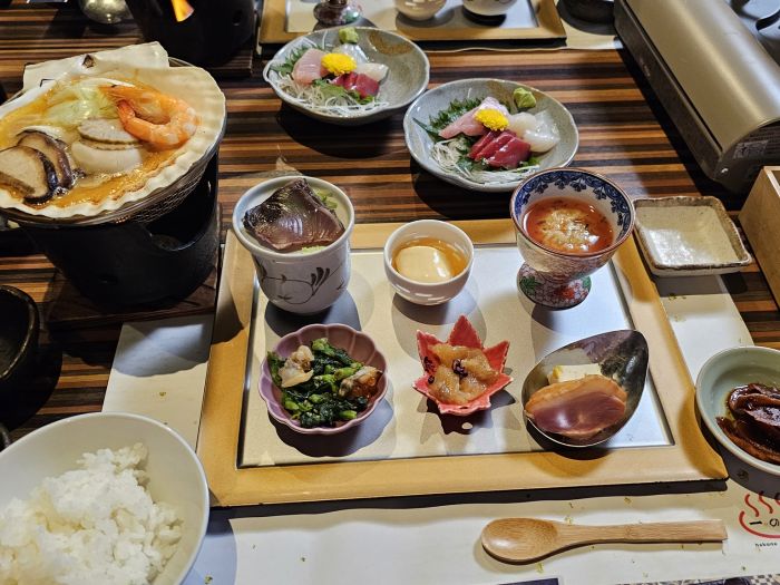 6 вечери (без включени напитки), 4 от които в местни ресторанти, 1 в ресторант с Maiko/Geiko представление и 1 в хотела в Хаконе;