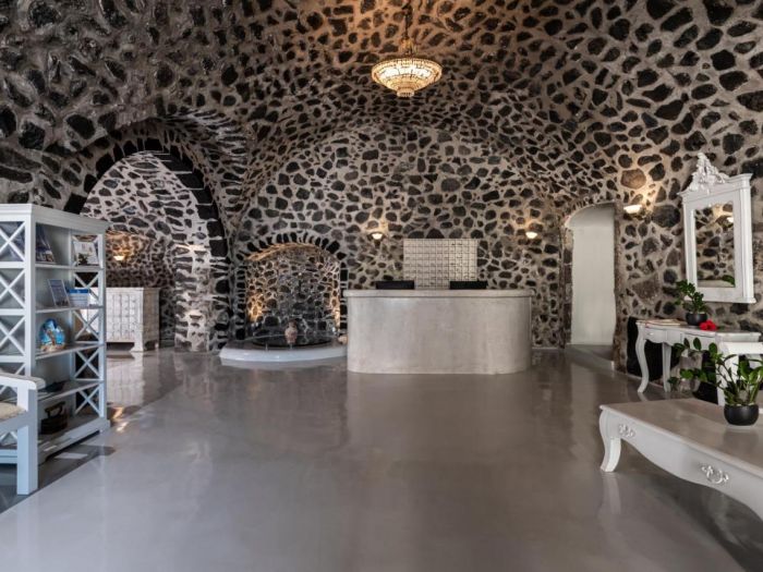 Хотелът се намира на 7 км от летището, на 12 км. от селището Иа, на 9 км. от пристанището, в живописния Фиростефани, на пешеходно разстояние от центъра на столицата Фира. Хотелски комплекс Splendour Resort предлага елегантни 5-звездни помещения за настаняване с изглед към Егейско море.