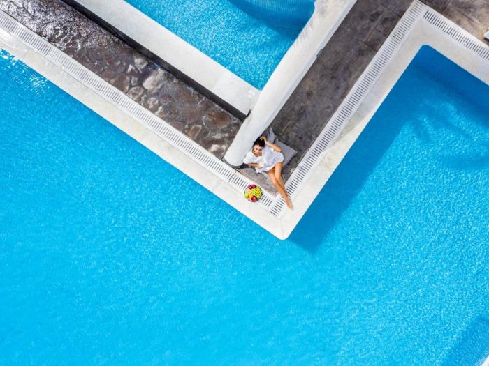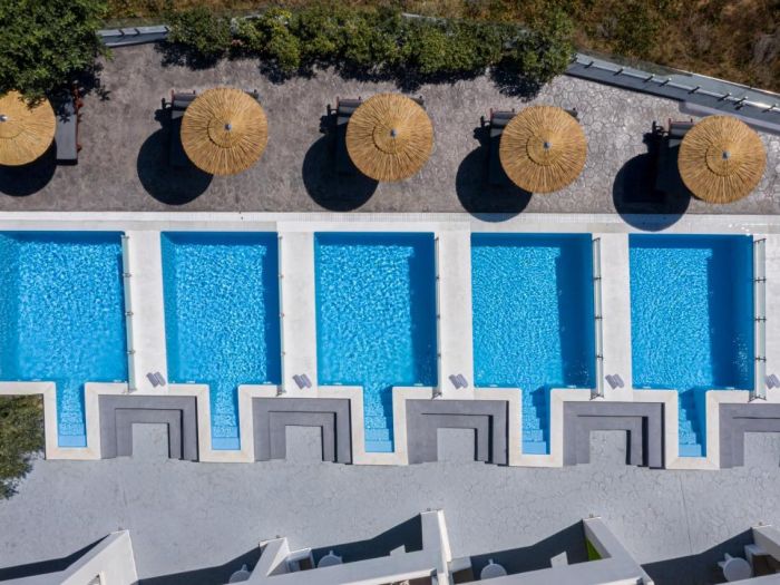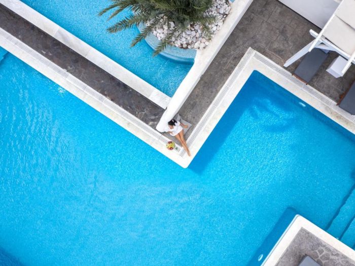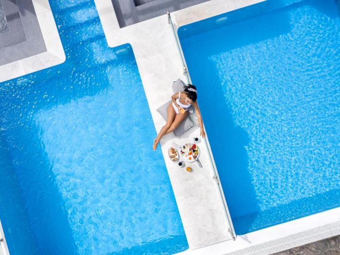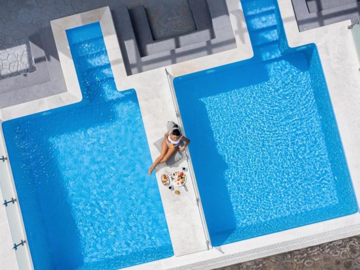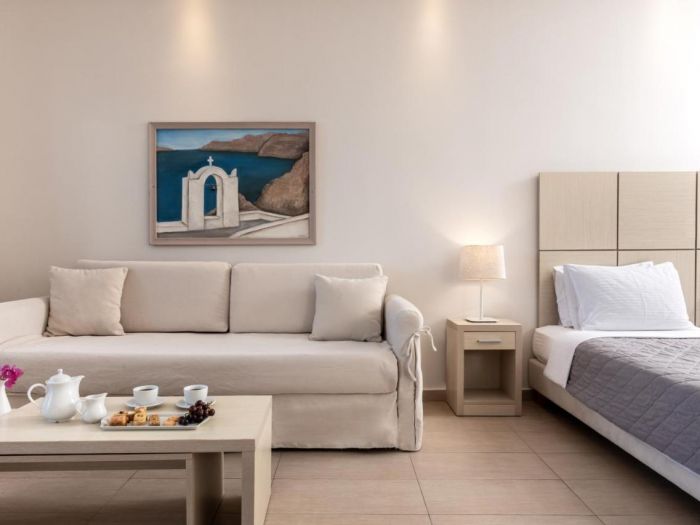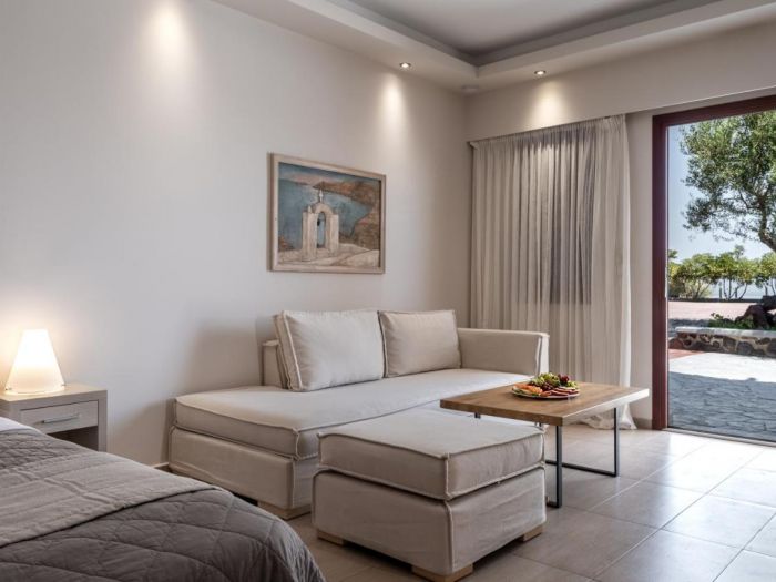 Хотелът разполага с 59 стаи. Всички стаи са светли и декорирани в светли нюанси, оборудвани са с климатик, телевизор, телефон, баня с душ или вана, сешоар, мини бар, сейф (срещу заплащане), балкон, Wi-Fi интернет. Всички стаи са с изглед море. Някои от стаите са със СПА вана, а други са със самостоятелен басейн.