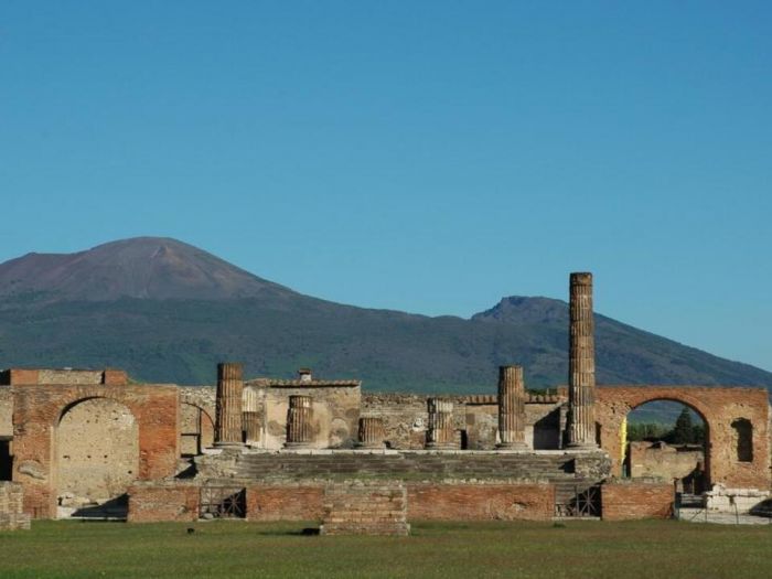Вулканът Везувий, изригнал през 79 г., е разрушил някогашния процъфтяващ античен град, но вулканичната пепел е съхранила за потомците и до днес богатите домове с невероятни фрески и мозайки, термални комплекси, вили, храмове и театри. Посетителите могат да си представят как са живели в онази далечна императорска епоха. Съхранени са Храмът на Аполон, Базиликата, Форумът, пазарът, храмът на Веспасиан, храмът на Юпитер, термите, храмът на Фортуна Августа, термопилите, публичният дом, водопроводът, улицата на Изобилието, Големият театър, казармата на гладиаторите и много др. Връщане в хотела.