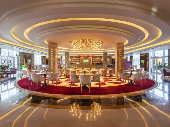 На територията на хотела: 2 основни ресторанта, 2 а-ла-карт ресторанта - ориенталски и марокански, 8 бара, сауна, парна баня, хамам, фитнес, 25 външни басейна, аквапарк - 4 водни пързалки за възрастни и 55 за деца, банкомат, магазини.