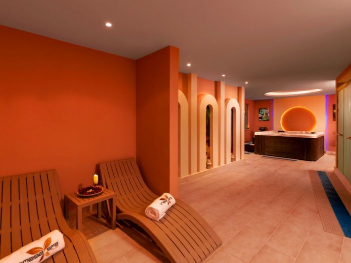 За деца: Комплексът разполага с четири открити детски басейна, детски клуб, детска площадка и водни пързалки за децата в аквапарка.