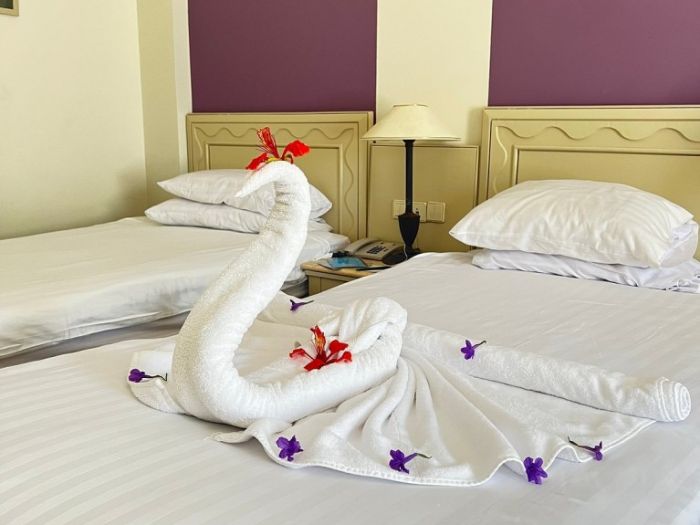 Плаж: Хотелът разполага със собствен пясъчен плаж, който е на 500 метра. Снабден е с понтон и се намира на трета брегова линия, което предоставя уникален подводен свят с коралови рифове. Чадъри, шезлонги, матраци и хавлии се предоставят безплатно. Има и безплатен автобус, който ще ви отведе до плажа. Има обособена зона за VIP гости.