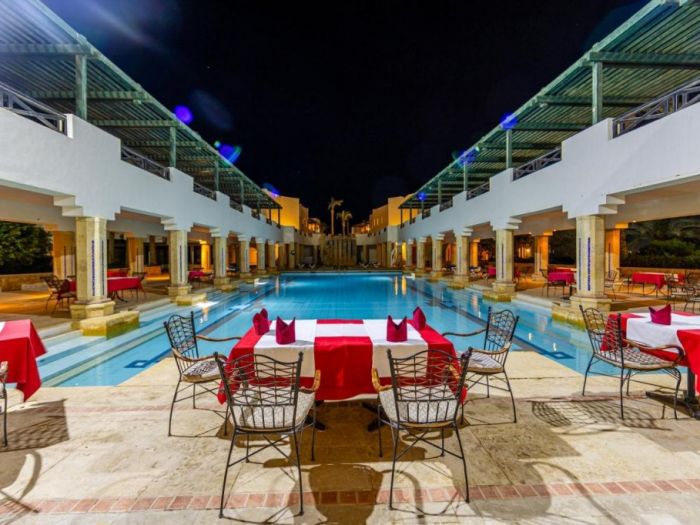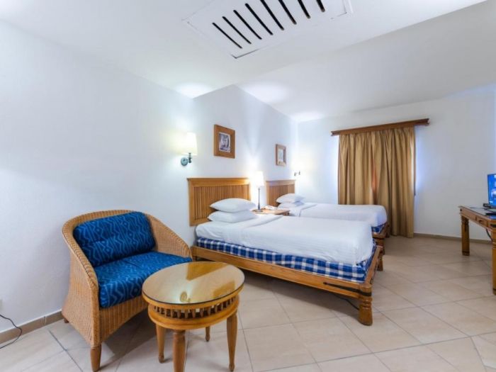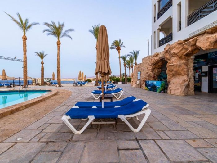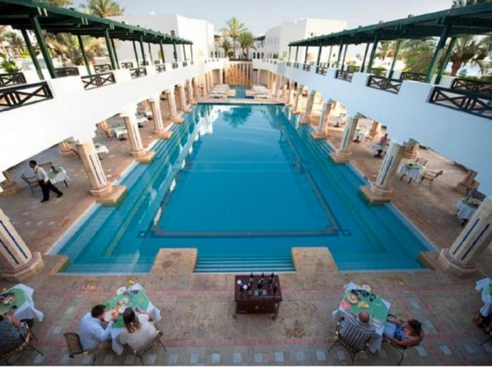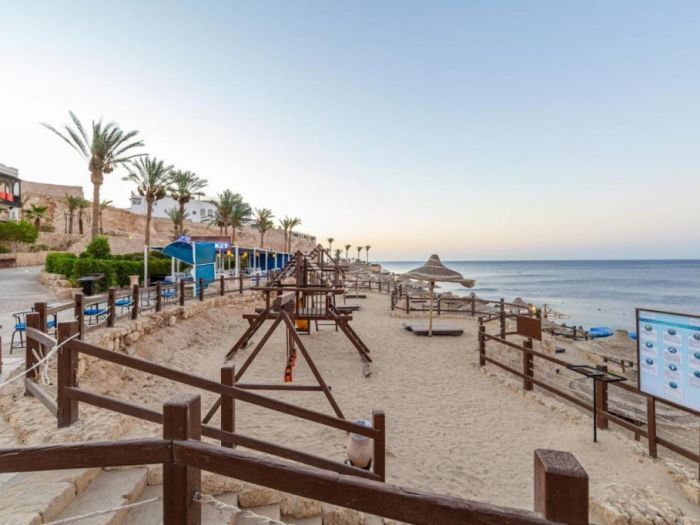 Разположение: Хотелът е построен в традиционен мавритански стил в красива градина, разположен на брега на морето, директно на частния плаж с коралов риф Far Garden Reef, на б км от център на Наама Бей, на 9 км от летището.