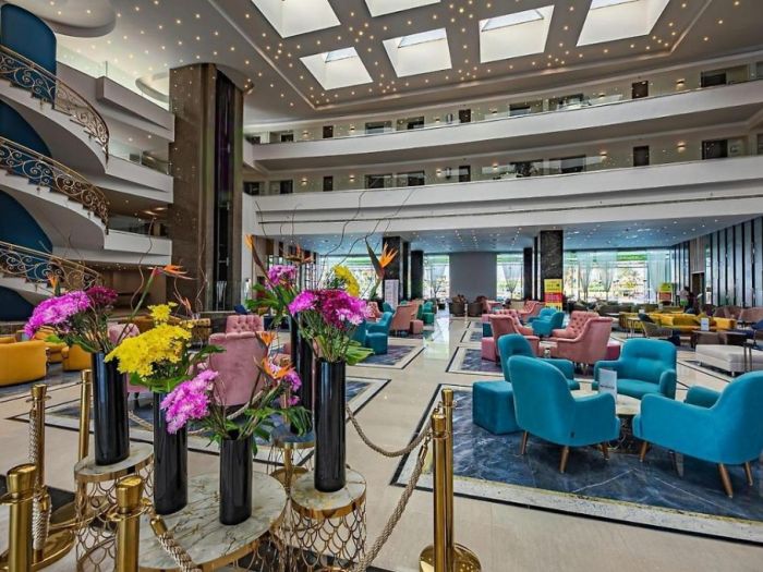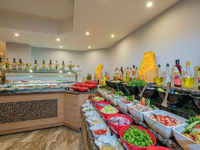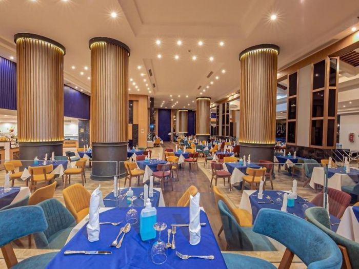 За деца: Хотелът разполага с отопляем през зимата детски басейн с площ от 315 кв.м., аквапарк с 16 детски пързалки, предназначени за гости с ръст 120 см., детски клуб за деца от 4 до 12 години (под наблюдението на родители). наблюдение), детска дискотека от 20:30 до 21:15, детска площадка и бебешка кошара по заявка (безплатно). Ресторантът предлага детски столчета и бюфет.
