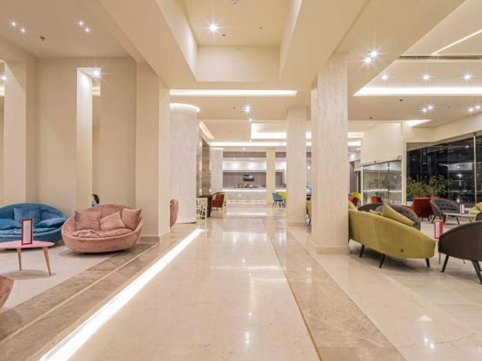 Плаж: На 800 метра от хотела има частен пясъчен плаж, който се намира на трета брегова линия. Чадъри и шезлонги се предлагат срещу допълнително заплащане. Дължината на плажа е 360 метра, като за удобно влизане в морето се препоръчва използването на специални обувки.