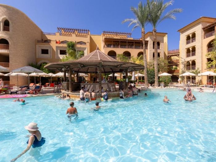 Разположение: Grand Waterworld Makadi (по-рано известен като Sunwing Waterworld Makadi) се намира на 25 км от летището в Хургада и на 35 км от центъра на града и на първа линия от брега на морето. Построен около огромен воден парк, с огромни водни пързалки, басейн с вълни, Flowrider и ленива река, това е идеалното място за бебета и деца от всички възрасти, които обичат водата.