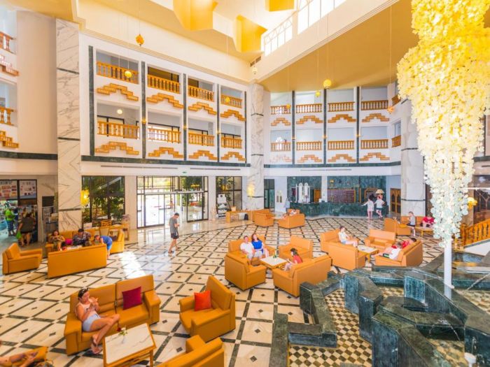 Oсновен ресторант, а ла карт ресторант с италианска кухня (срещу заплащане/с предварителна резервация, съгласно концепцията на хотела/1 безплатно посещение при минимум 7 нощувки), снек ресторант на плажа, 4 бара, мавританско кафене (срещу заплащане), 2 открити басейна, закрит басейн (отопляем), водни пързалки, СПА център, магазини, конферентна зала, 2 тенис корта, анимация, денонощна рецепция, обмяна на валута.