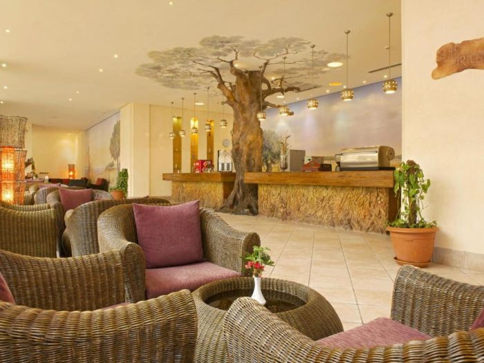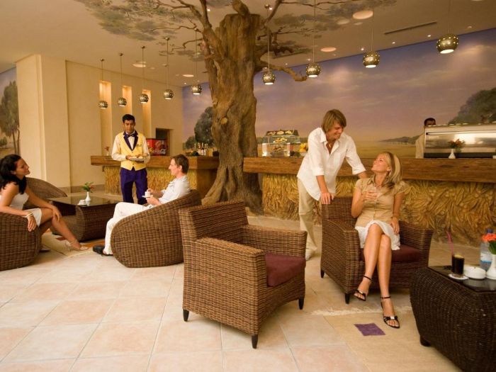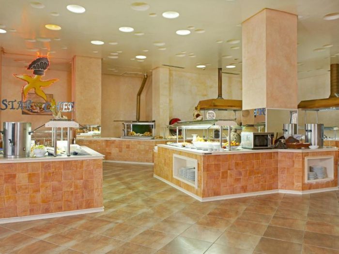 Хотелът разполага с основен ресторант "Palm D’or специализиран в международната кухня. Барове - централен бар, Пиано бар (платен), Американски бар (платен) + бар на басейна