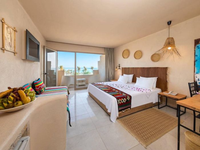 Хотелът разполага с 307 стаи, разпределени в основна сграда и мензели - Standard Room, Pool View Room, Superior Room (35 кв.м.), Superior Sea View Room, Family Room (57 кв.м.,две помещения с или без интериорна врата).