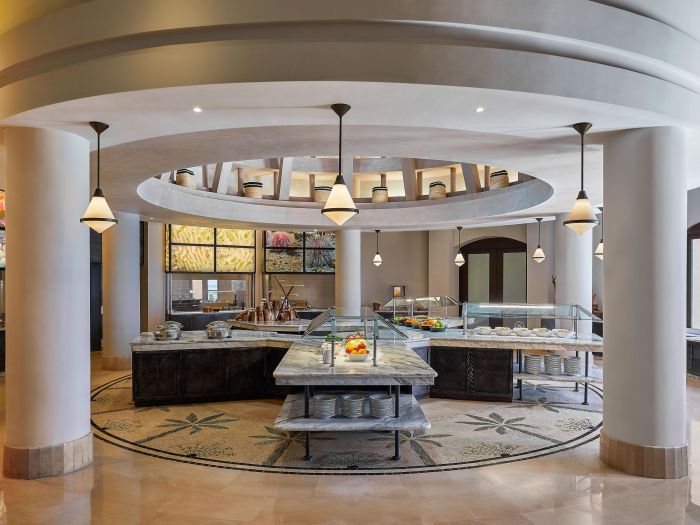 Основен ресторант, 3 а-ла-карт ресторанта (ориенталски, италиански, интернационален-с предварителна резервация, съгласно концепцията на хотела), 4 бара, 2 открити басейна, СПА център, конферентна зала, магазини, паркинг.