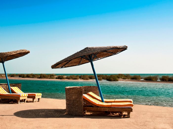 Собствен, пясъчен, с дължина 45 м, в близост до коралов риф. Чадъри, шезлонги и плажни кърпи на плажа и при басейна - безплатно.