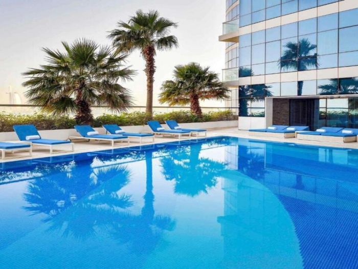 Novotel Dubai Al Barsha е разположен в престижния район Al Barsha на Дубай, само на няколко минути пеша от метростанция Sharaf DG. Хотелът се намира в непосредствена близост до Mall of the Emirates, а популярните райони като Dubai Marina, Jumeirah Beach, Palm Jumeirah и Downtown Dubai са лесно достъпни с метро или автомобил. Локацията е удобна за туристи и бизнес гости, благодарение на близостта до търговски центрове, ресторанти и бизнес зони.