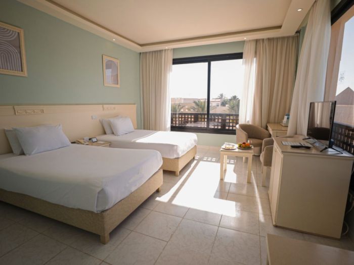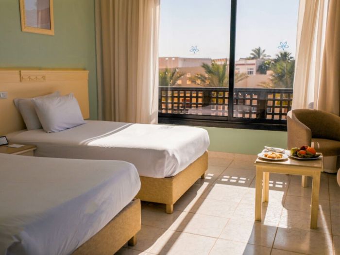 Разположение: Хотелът се намира на 17 км от летище Хургада, на 23 км от центъра на Хургада, на брега на морето (плажа е на разстояние 700 м от рецепция)