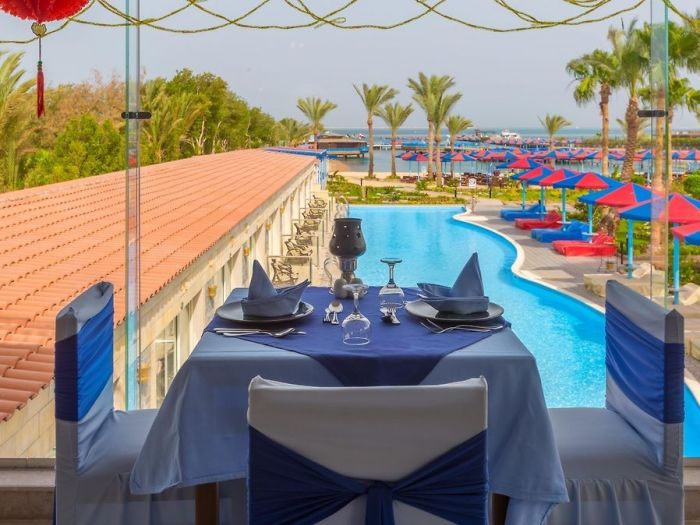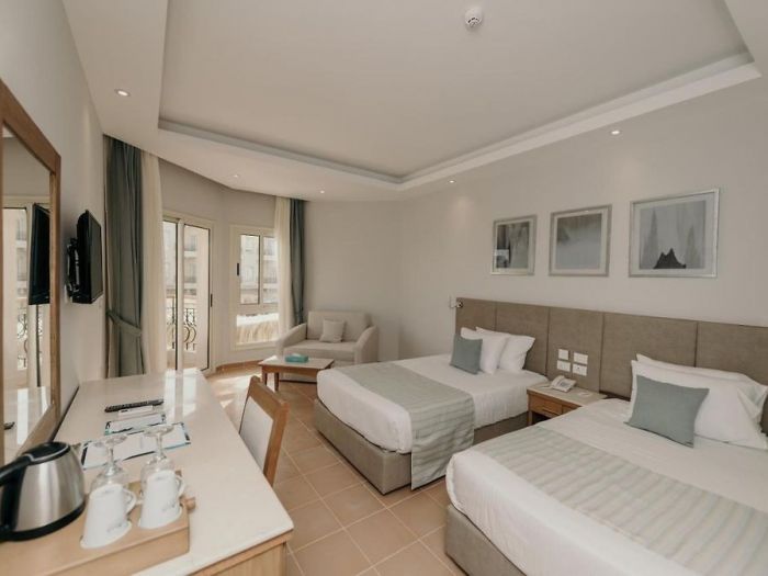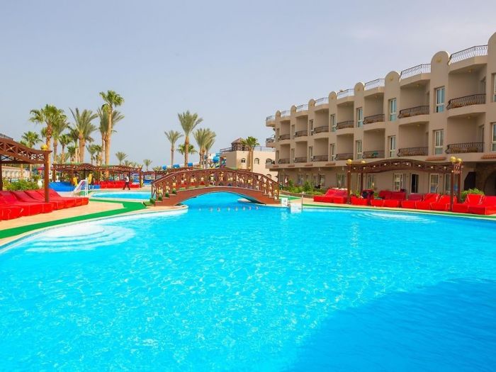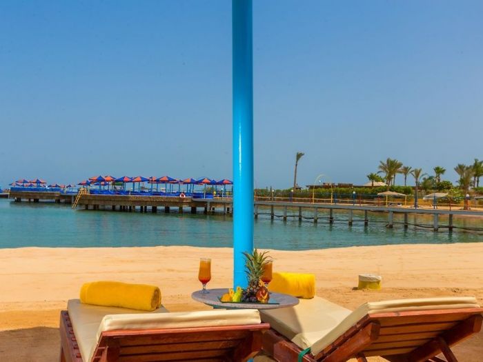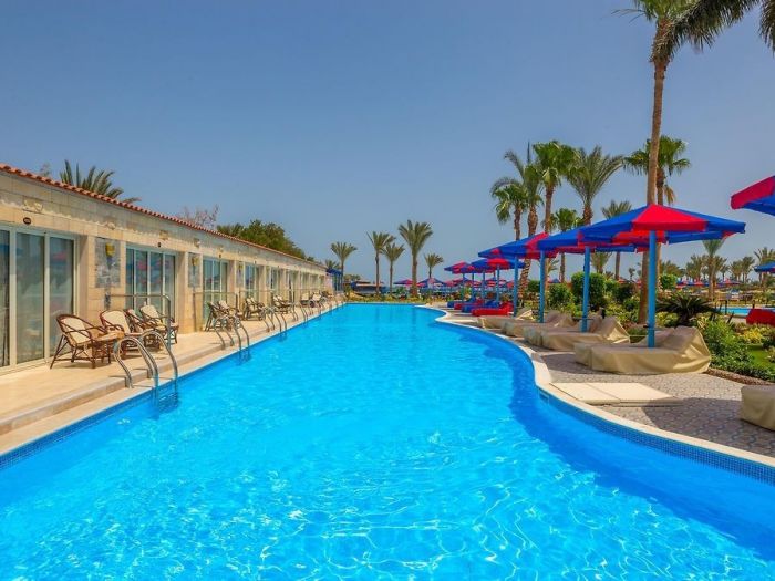Местоположение: Хотелът се намира на брега на Червено море, на първата брегова линия в района Ел Мамша в Хургада, само на 12 км от центъра на града и на 5 км от летище Хургада.