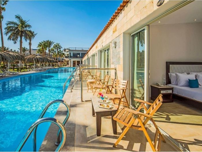 Разположен на брега на морето, този хотел предлага на своите гости просторни стаи, включително двустайни апартаменти. Гостите имат достъп до открити басейни с водни пързалки, както и СПА център с турска баня и сауна. Идеален е за семейни почивки.