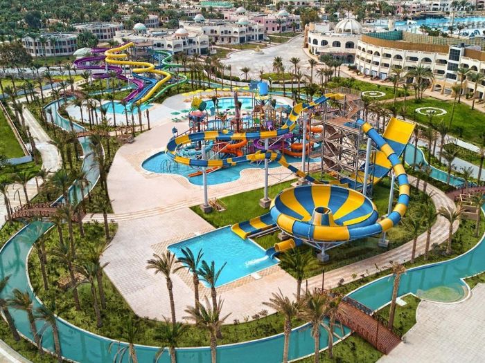 Основен ресторант, 2 а-ла-карт ресторанта (италиански и морски- срещу заплащане/с предварителна резервация, съгласно концепцията на хотела) 6 бара, 9 басейна (2 от които отопляеми през зимния сезон), аквапарк, конферентна зала, СПА център, паркинг, магазини.