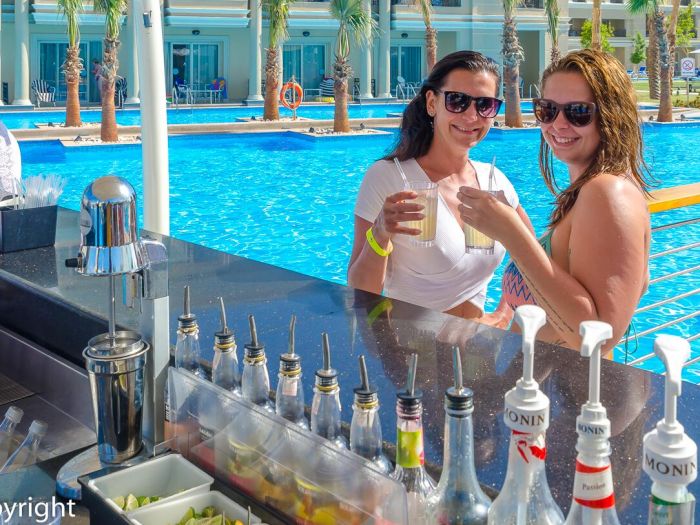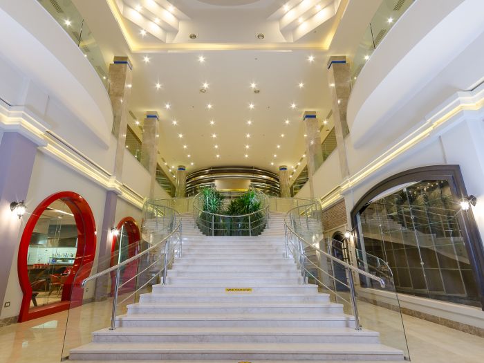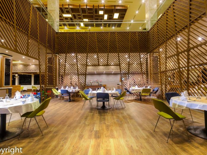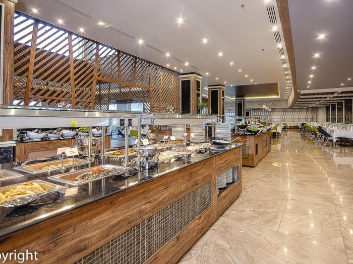 Основен ресторант, 4 а-ла-карт ресторанта (италиански, монголски, китайски, гръцки), за които се изисква предварителна резервация и дрескод, 6 бара, дискотека, 3 открити басейна (с подгряване през зимния сезон), 13 водни пързалки за деца, 30 водни пързалки на територията на хотел Titanic Resort & Aqua Park, разположен на 200 метра от хотела – безплатно, 2 тенис корта (с твърдо покритие), мини голф, СПА център, конферентна зала, магазини.